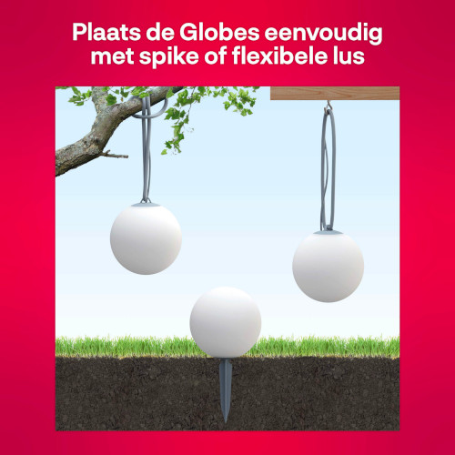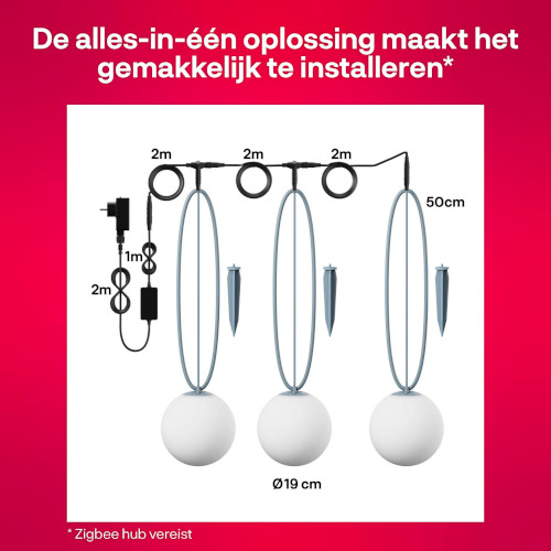 De Smart Globe Light slanke buitenverlichting zorgt voor de perfecte sfeer in jouw tuin. Met de meegeleverde kabels en grondpennen kan je zelf bepalen of je deze slanke lampen ophangt of in de grond tussen de bloemen zet.