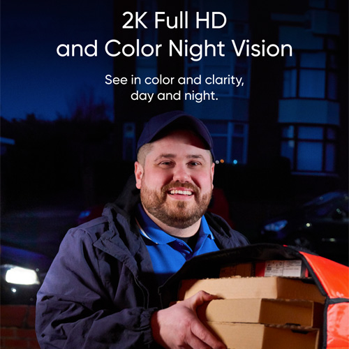 Slanke deurbel met twee camera's. De hoofdcamera heeft een 2K beeldresolutie en de tweede camera geeft een volledig beeld van de vloer bij je deur. Voor deze deurbel heb je geen Eufy basisstation nodig.